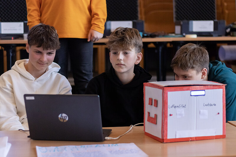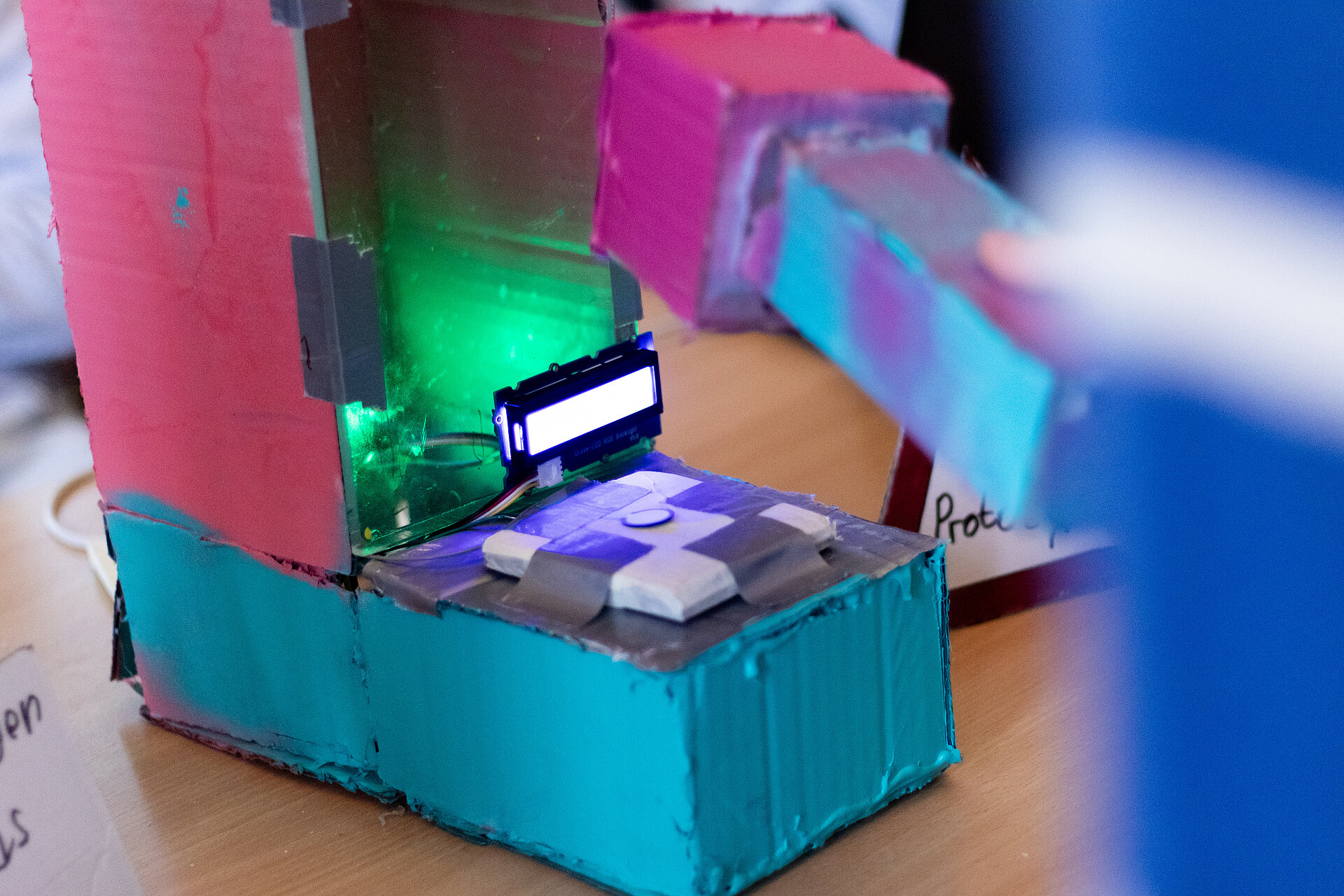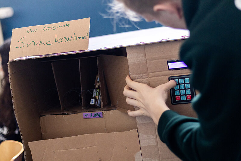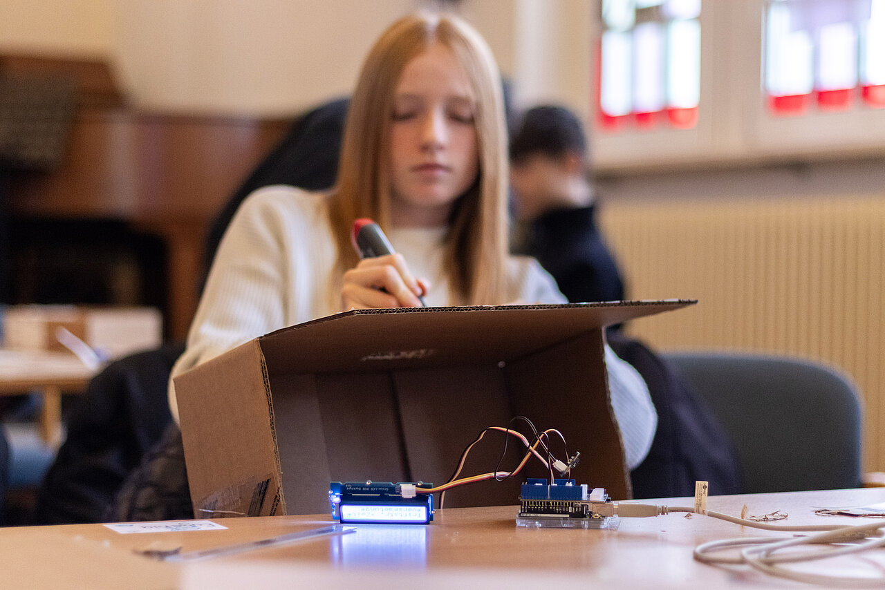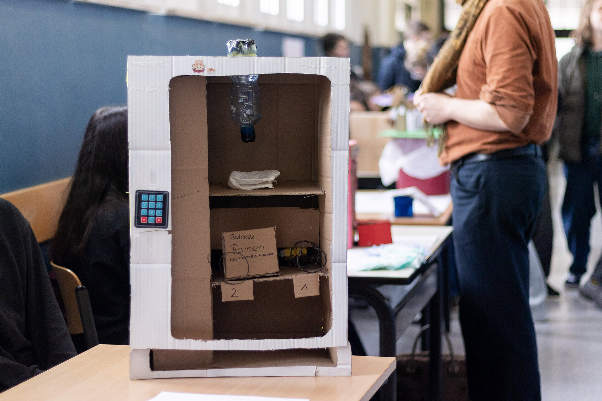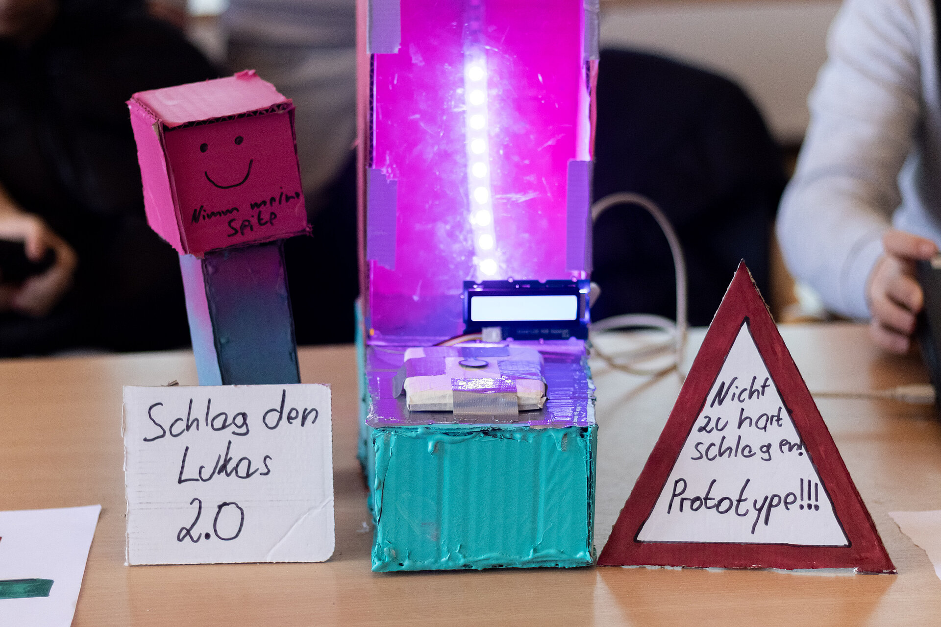 Zu den entstandenen Prototypen gehört unter anderem ein Hygienespender, der auf Knopfdruck Menstruationsprodukte ausgibt. Das Besondere: Seine Umsetzung wird derzeit sogar für den realen Einsatz an der Schule geprüft. Außerdem entstanden ein Rolltreppenmodell, das mechanische Abläufe verständlich demonstriert, ein kräftemessender Hau-den-Lukas, eine spielerisch-interaktive Lügenbox, eine digitale ÖPNV-Anzeige, die in Echtzeit die Abfahrtszeiten der nächstgelegenen Haltestellen anzeigt, sowie ein automatisch öffnendes Tor mit Zugangschip, das den Schulzugang sicherer und komfortabler gestalten könnte.