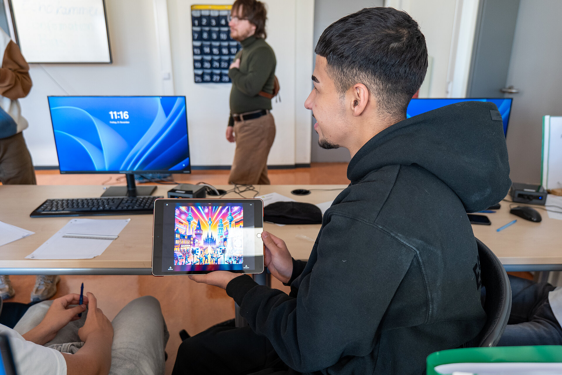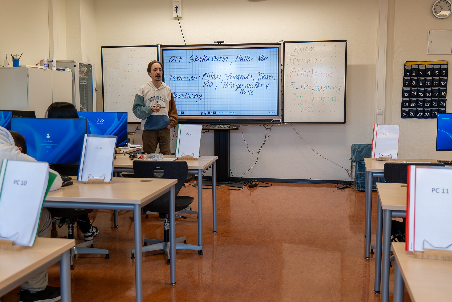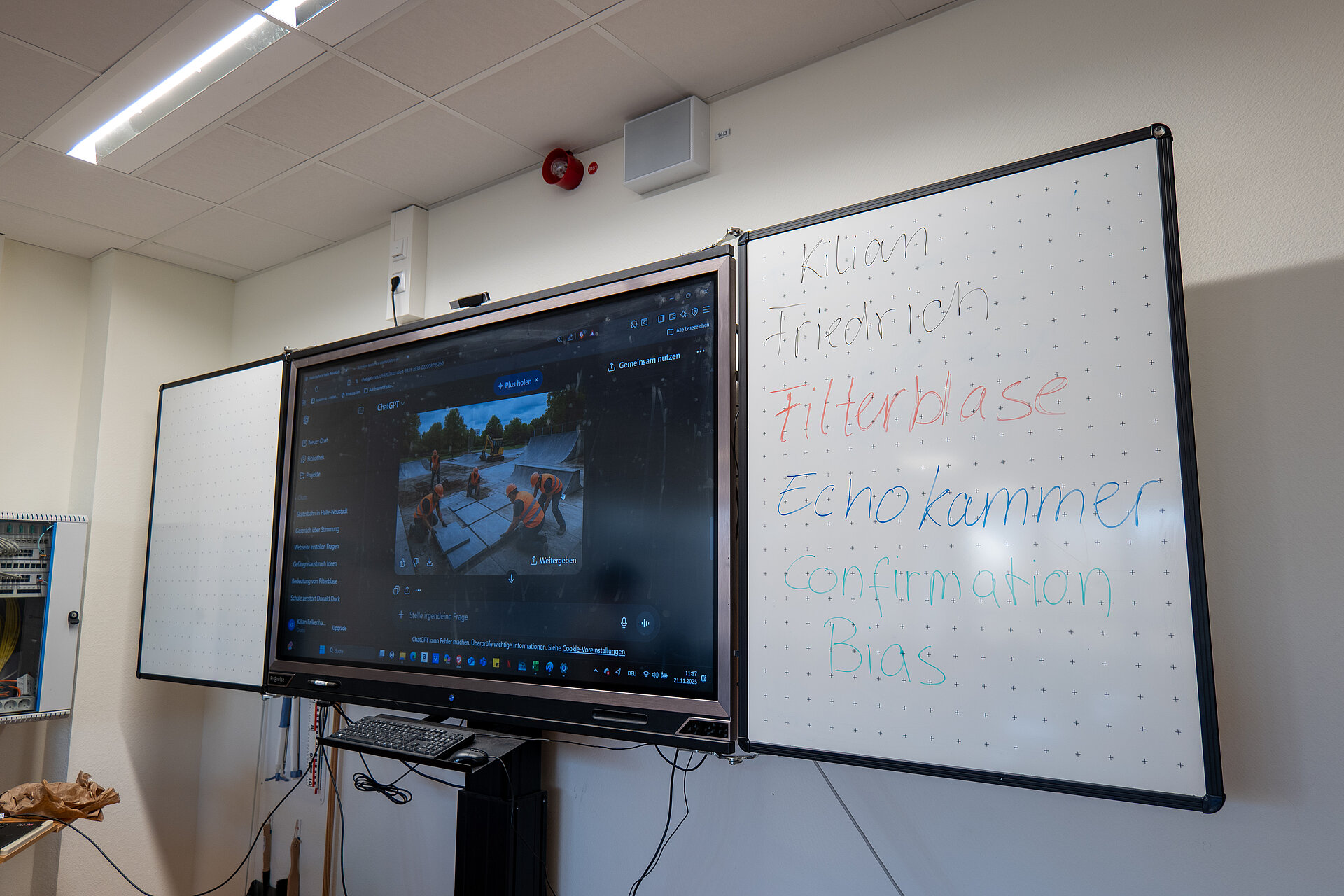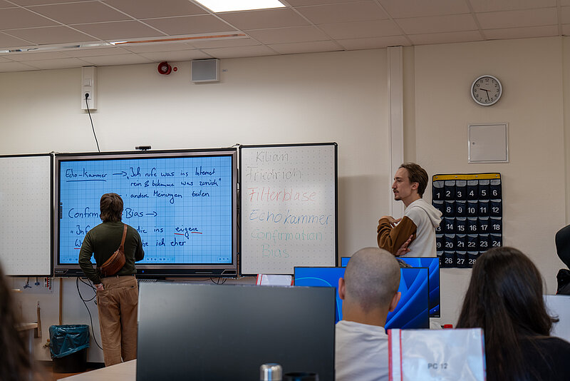 In dem eintägigen Workshop beschäftigten sich die Teilnehmenden intensiv mit Fake News und lernten, Botschaften aus dem Internet zu hinterfragen. Sie analysierten digitale Beiträge, unterschieden verlässliche Informationen von manipulativen Inhalten und setzten sich mit der Wirkung von Falschmeldungen auseinander. Ein weiterer Schwerpunkt lag auf dem praktischen Umgang mit Künstlicher Intelligenz. Die Gruppe nutzte verschiedene KI Tools, erzeugte eigene Texte und Bilder und reflektierte die Wirkung dieser Inhalte auf andere.