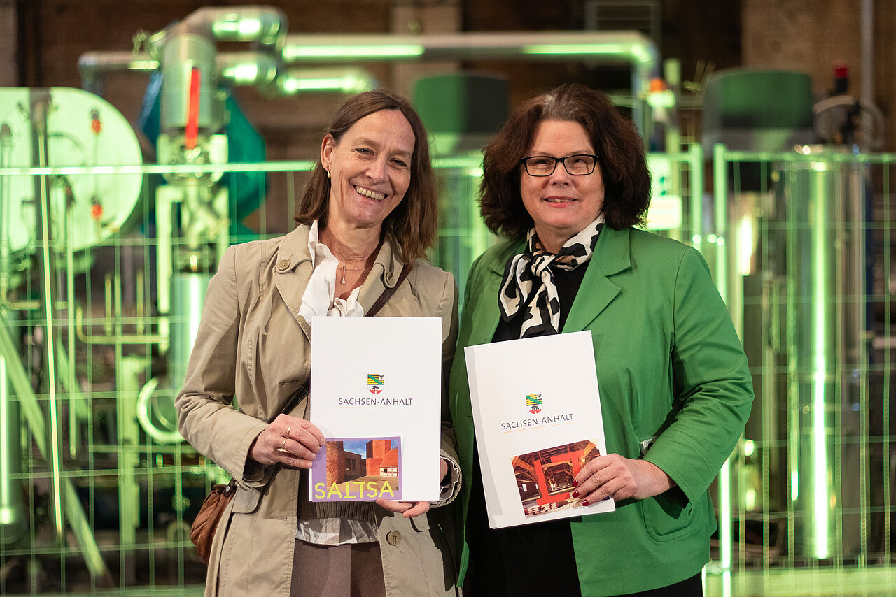 Mit der feierlichen Übergabe des Fördermittelbescheids am 09. April 2026 ist das Projekt SALTSA offiziell gestartet. Die Förderung in Höhe von rund 1 Million Euro wurde im Rahmen des Auftakts zum Tag der Industriekultur Sachsen-Anhalt 2026 in der Peter-Behrens-Kraftmaschinenhalle in Dessau-Roßlau überreicht. Staats- und Kulturminister Rainer Robra übergab den Bescheid an die Projektpartner Stadt Halle (Saale) und uns. Das Vorhaben wird im Rahmen der NEB-Richtlinie Neues Europäisches Bauhaus durch das Land Sachsen-Anhalt unterstützt. Wir laden gemeinsam mit der Stadt Halle (Saale) am 30. April 2026 zum öffentlichen Kick-off in das Salinemuseum Halle ein.