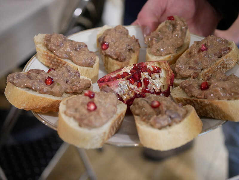 Neben leckeren Kostproben – Weiße Bohnen in rauchigem Cascabel-Chili-Öl und weiße Riesenbohnen mit gerösteten Kirschtomaten (nach Ottolenghi) sowie georgisches Bohnenmus – erfuhren die Gäste mehr über das europäische Forschungsprojekt INCREASE (https://www.pulsesincrease.eu/experiment), das alte Bohnensorten wieder auf unsere Felder und Teller bringen will.