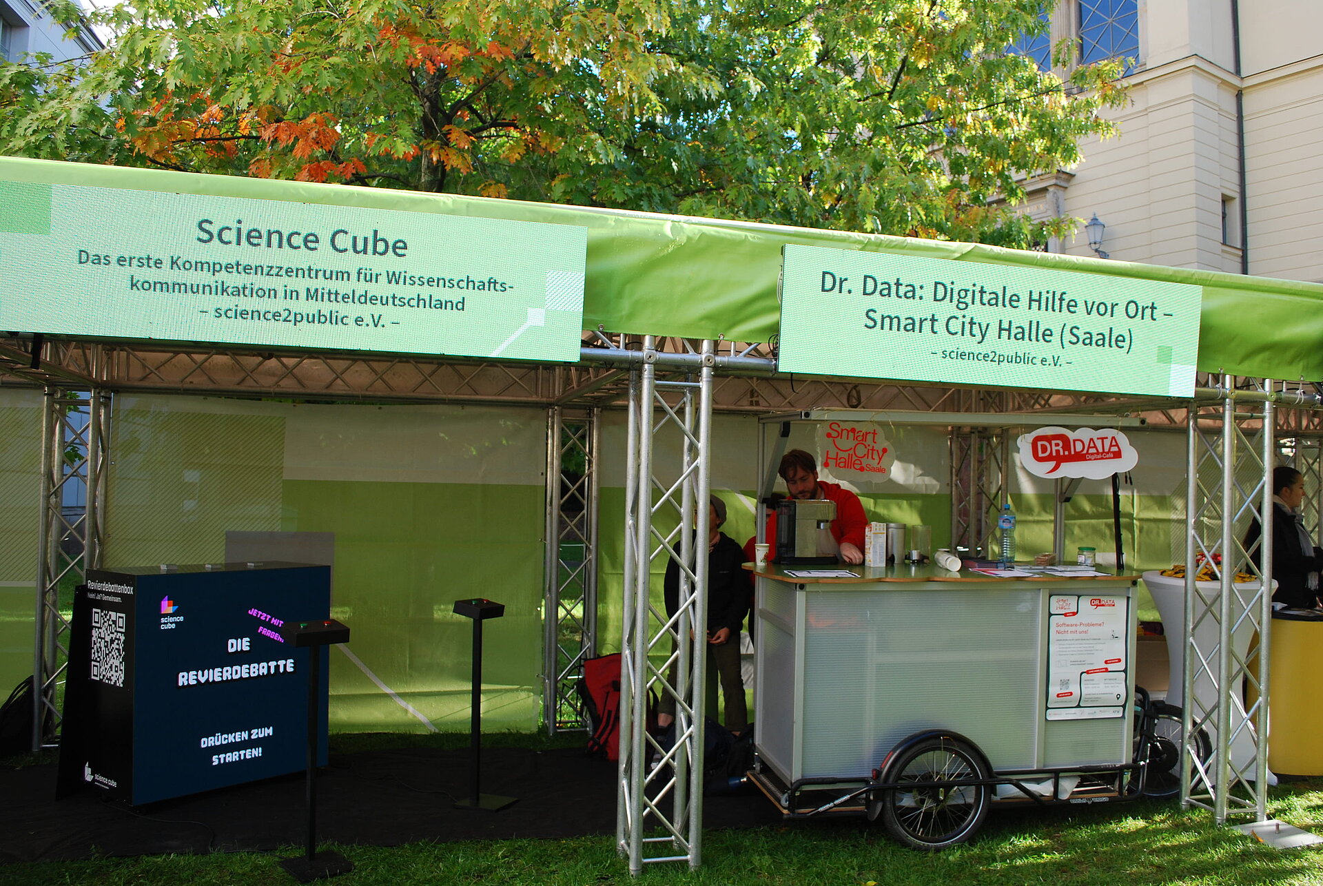 Zum Start des Wintersemesters 2025 fanden vom 8. zum 9. Oktober an der Martin-Luther-Universität Halle-Wittenberg wieder die Orientierungstage für die neuen Erstsemester statt – und wir waren am Donnerstag mit gleich zwei spannenden Angeboten dabei: der Revierdebattenbox und Dr. Data im Rahmen des Smart-City-Projekts der Stadt Halle (Saale).