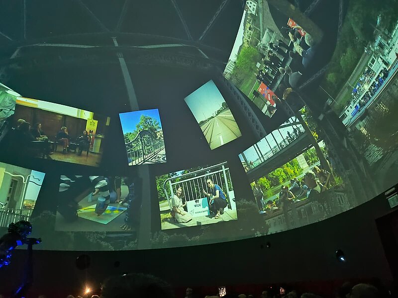 Das Planetarium Halle (Saale) diente als eindrucksvoller Veranstaltungsort für die Eröffnung. Die Kuppel bot sich perfekt für eine 360°-Filmvorführung über unsere Stadt Halle (Saale) an – mit Drohnenaufnahmen über der Innenstadt. Gezeigt wurde außerdem eine Rückschau auf das letzte Themenjahr mit Fotos von Brücken und gemeinsamen Veranstaltungen. Wir sind gespannt und freuen uns auf die kommenden Veranstaltungen des neuen Themenjahres!
