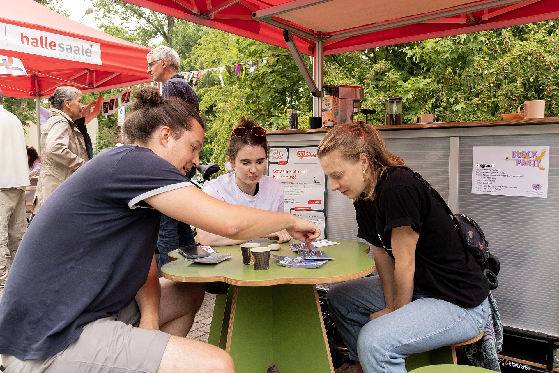 Das Programm wurde durch vielfältige Aktionen ergänzt: Mitmachstationen, Pflanzentauschbörse, Spiele, ein Swingtanz-Workshop mit Beswingt in Halle, Live-Musik von The Perky Pollyvocs und ein DJ-Set sorgten für eine lebendige Atmosphäre. Das Fest bot Raum für Austausch, Vernetzung und das Kennenlernen neuer digitaler Angebote im Stadtteil.
